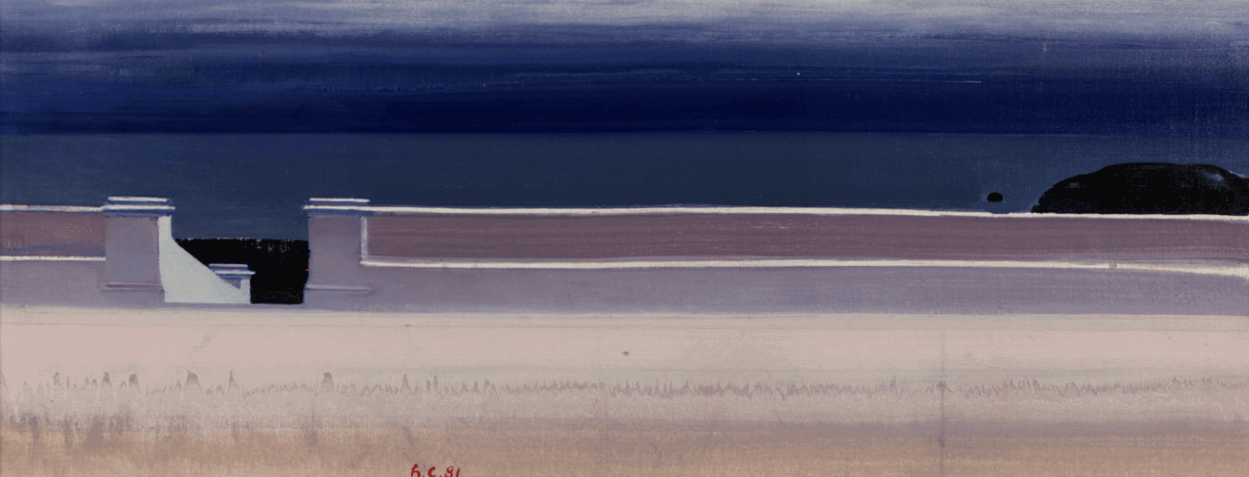 Les pierres et la peau, 1978-1981, détrempe et aquarelle, 36,8 x 55,8 cmCourants d’air, 1979-1980, aquarelle, 48 x 79 cmLa fin des jeux, le soir, 1973-1974, huile sur toile, 146 x 114 cmLe voyage, 1967-1969, huile sur toile, 48 x 68 cmLes miroirs avides, 1989-1990, huile sur toile, 41 x 70,5 cmL’orage, 1981, huile sur toile, 23 x 58 cmL’horizon le soir, 1986, aquarelle, 38 x 57,15 cmLes voiles du désir, 1971, huile sur toile, 62 x 53 cmLe mur et la mer, 1983, aquarellePlage de Trouville, 1992-1995, tempéra sur carton, 29,8 x 48,5 cm